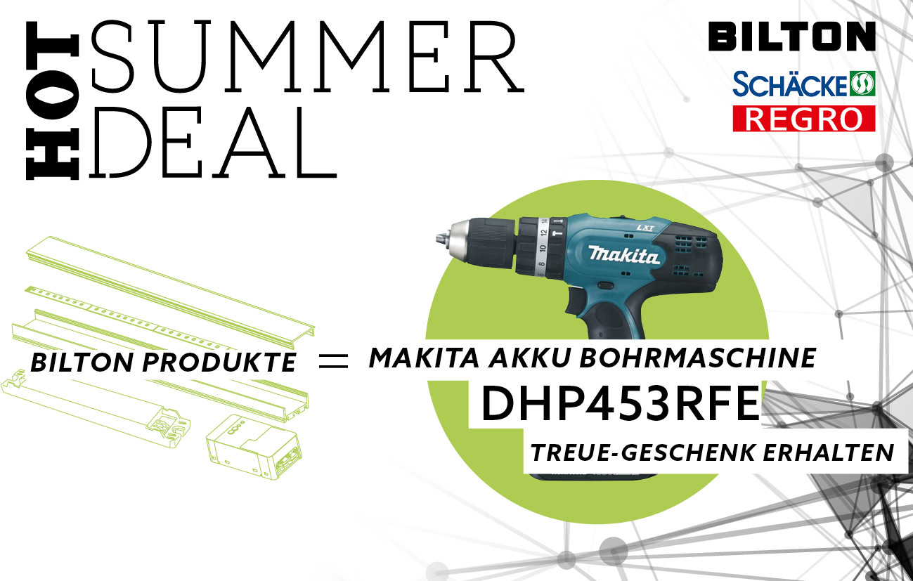 Das ist wirklich ein perfekter Deal: Sie kaufen Ihre BILTON-Produkte bei Rexel Austria (Regro- oder Schäcke-Niederlassung) und erhalten ab einem Gesamtwert von 1.599,– Euro eine Makita-Akku-Bohrmaschine gratis dazu! Profitieren Sie jetzt von den Neuheiten beim BILTON »Hot Summer Deal 2018« in Zusammenarbeit mit Rexel Austria!