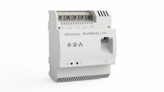 Das neue devolo MultiNode LAN ist ein speziell für die Vernetzung von AC-Ladepunkten entwickelter Hutschienen Powerline Adapter. Hard- und Software sind für diesen Einsatz maßgeschneidert. Das devolo MultiNode LAN kann entweder direkt in die Wallbox integriert oder in einem separaten Abgangskasten installiert werden und nutzt mit Powerline-Technologie die ohnehin erforderliche Stromleitung als Datenverbindung. Dazu wird einfach ein zentrales MultiNode LAN-Gerät per Ethernet mit einem Router verbunden. Via Powerline kommuniziert das devolo-Zentralgerät mit den anderen MultiNode LAN-Geräten an den Ladepunkten.
