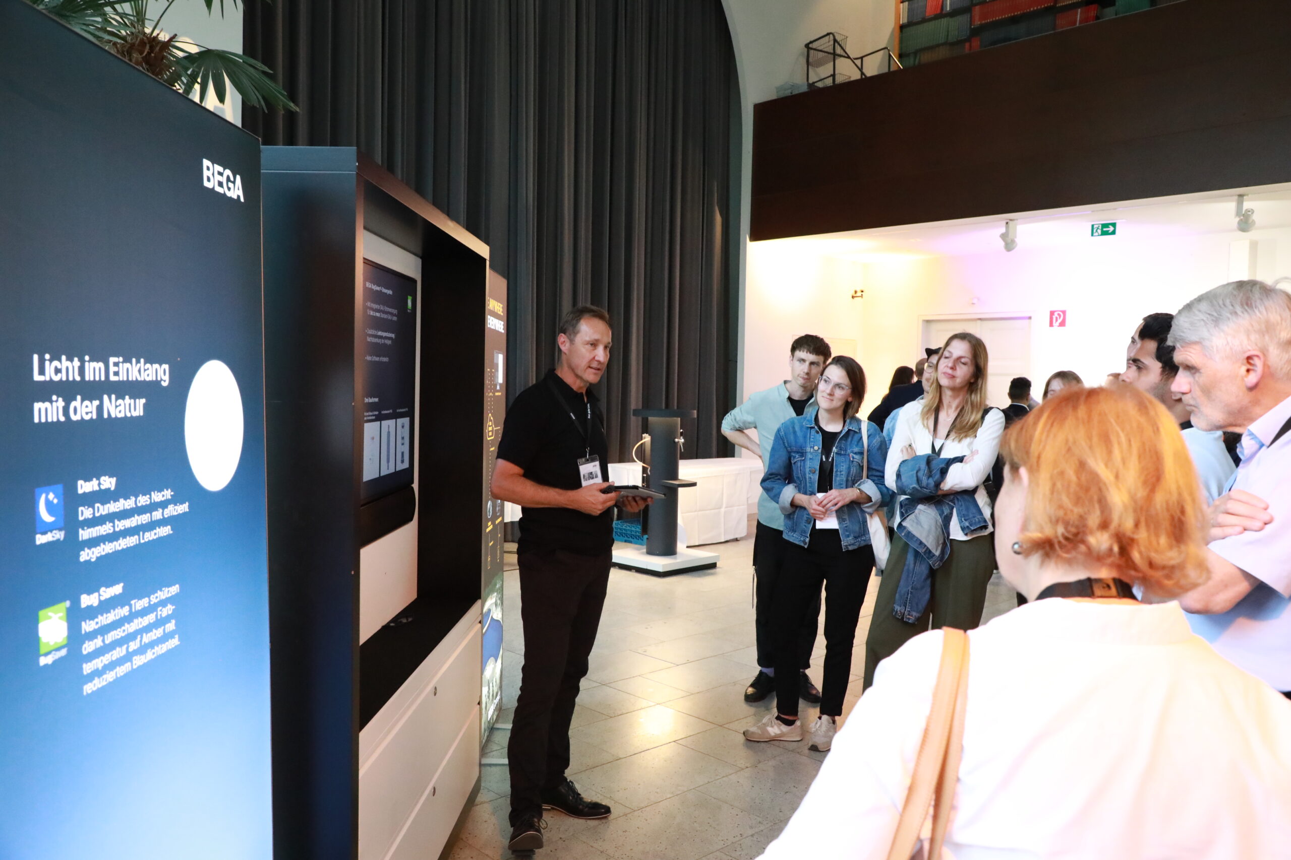 Unter der Headline »Sustainable by design« erwartete die Gäste ein spannendes Potpourri aus Beleuchtungs- und artverwandten Themen der verschiedensten Bereiche – mit anderen Worten: Es sollte Nachhaltigkeit in einem neuen Licht erlebt werden. „Wir präsentieren Ihnen das Gesamtpaket für verantwortungsvollen Lichteinsatz im Sinne von Mensch und Natur. Zahlreiche Produktneuheiten erweitern das Spektrum der Lösungsmöglichkeiten für Ihre Beleuchtungsanforderungen!“, kündigte Bega bereits im Vorfeld der Veranstaltung an. Und so viel sei an dieser Stelle von der Redaktion verraten: Keiner der Gäste ging an diesem Abend enttäuscht nach Hause.