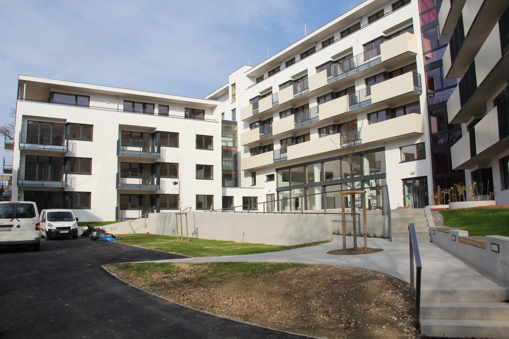 Barrierefrei wohnen und Betreuung rund um die Uhr – ein Konzept, das vor allem ältere Menschen immer mehr anspricht. Der Wunsch, sich im Alter um weniger kümmern zu müssen und im Notfall immer jemanden zur Hand zu haben, veranlasst immer mehr Senioren dazu, sich um genau solche Wohnungen umzusehen. Auch die Alpenland, Gemeinnützige Bau-, Wohn- und Siedlungsgenossenschaft, hat das erkannt und auf dem Areal der ehemaligen »Schober Villa« in St. Pölten einen beeindruckenden Neubau errichtet, der sich in erster Linie an ältere Bewohner richtet. Unter dem Schlagwort »Betreutes Wohnen« wurden 61 Wohnungen errichtet, die aufgrund ihrer bautechnischen Besonderheiten, beispielsweise im Sanitärbereich, den Ansprüchen älterer Personen gerecht werden sollen. So ist die komplette Anlage, sowie die Wohnungen selbst, barrierefrei gestaltet und mit gut zugänglichen Liften ausgestattet. In Kooperation mit dem Roten Kreuz St. Pölten sind Betreuungspersonen geplant, die etwa beim Einkauf tragen oder bei medizinischen Notfällen helfen sollen. Dafür steht diesen ein eigener Raum zur Verfügung.