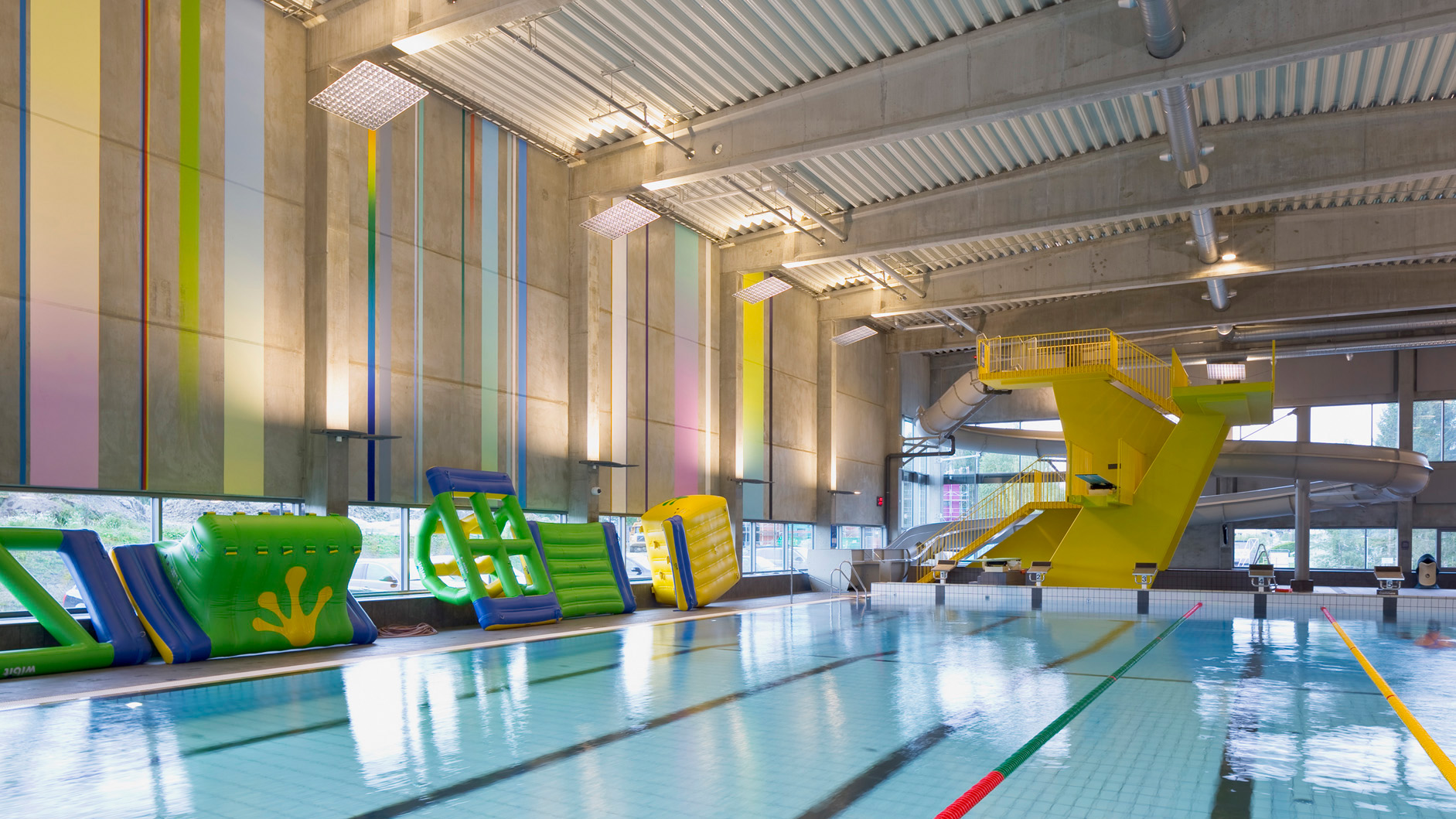 2017 wurde im norwegischen Årnes, nordöstlich von Oslo, eine neue Schwimmhalle mit ca. 4.000 m² Grundfläche fertiggestellt. Sie besteht aus einer Haupthalle mit einem 25 m langen Schwimmbecken, einem Aktivitäts- und Kinderbecken und einem Sprungturm mit 1, 3 und 5 Metern Absprunghöhe. Alle Bereiche werden mit Siteco Mirrortec-Systemen, bestehend aus Floodlight 20 LED-Flutern in Kombination mit Facettenspiegeln beleuchtet. Alle in Årnes verwendeten Leuchten sind mit DALI-Lichtsteuerungen ausgestattet, die eine effiziente Bedienung sowie eine komfortable und individuelle Lichtsteuerung ermöglichen.