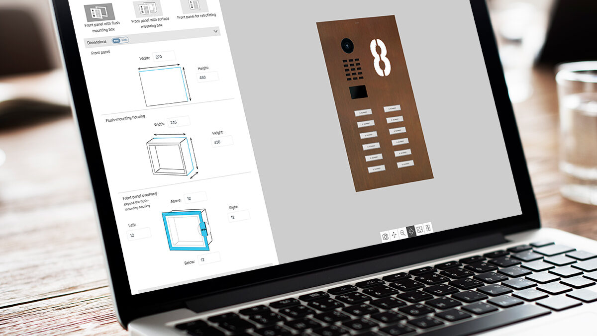 Visualisierung in 3D: Ihre DoorBird-Türstation wird direkt in 3D angezeigt. Mit jedem Gestaltungsschritt werden Preis und Lieferzeit automatisch aktualisiert.