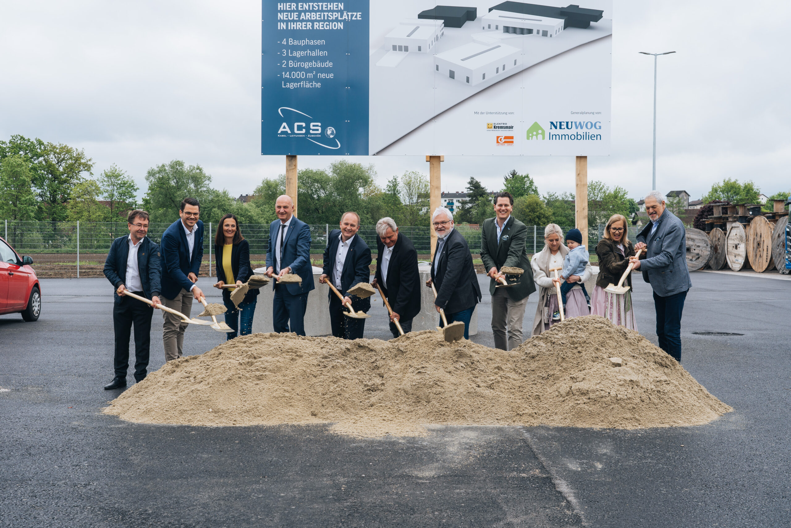 Am Freitag, 12.05.23, lud die Firma ACS Handels GmbH mit Sitz in Kematen an der Krems zum feierlichen Spatenstich für das anstehende Großprojekt.