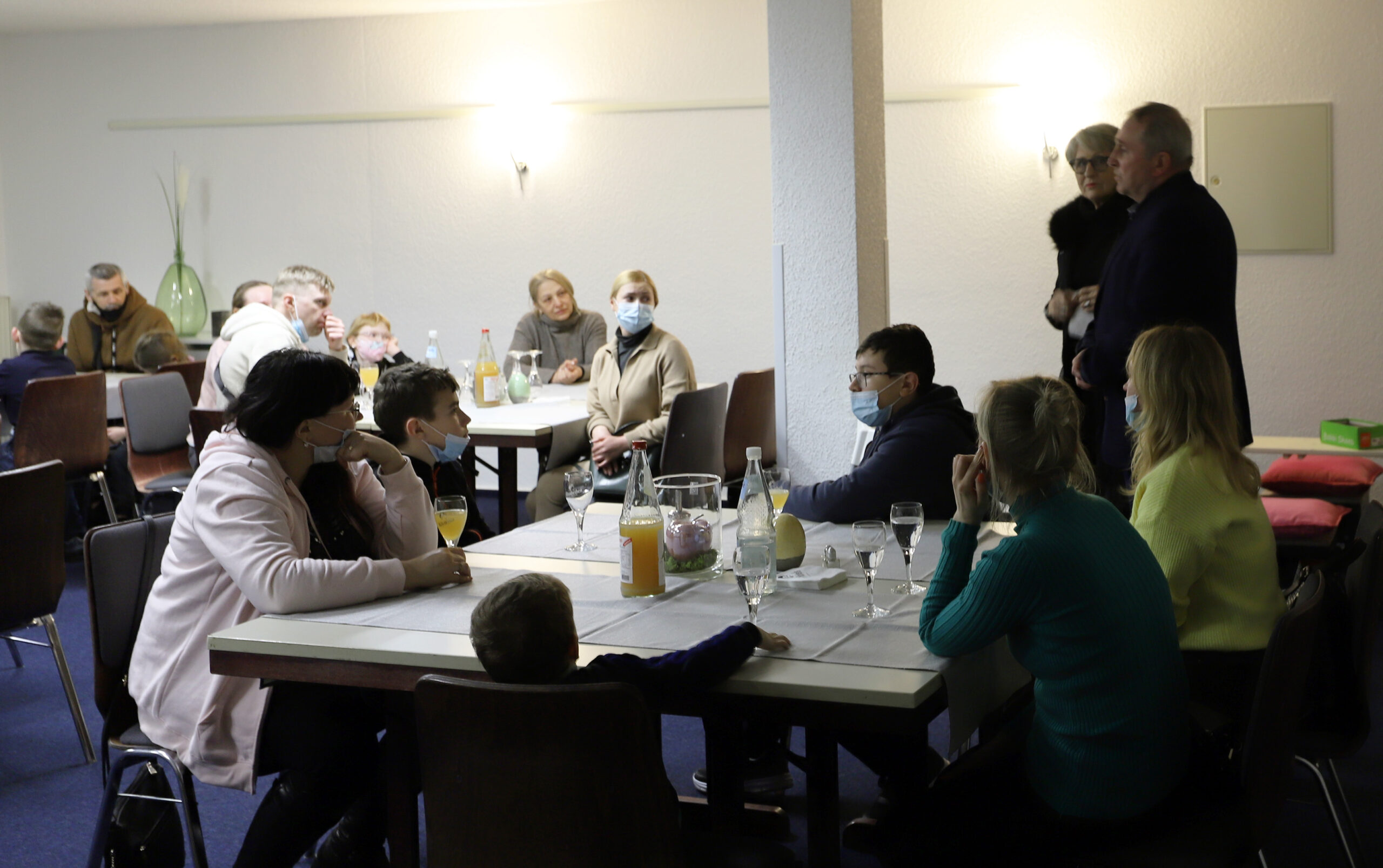 „Mein Herz blutet, wenn ich Sie hier so sehe“, sagt Debora Loh mithilfe der Übersetzungsfähigkeiten von Sergey Lakhno, Geschäftsführer Rittal Ukraine, zu den Menschen, für die nach über 14 Stunden Fahrt ein Buffet aufgebaut wurde. „Ich wünsche mir, dass Sie hier in diesem Hause innehalten und Kraft schöpfen können.“