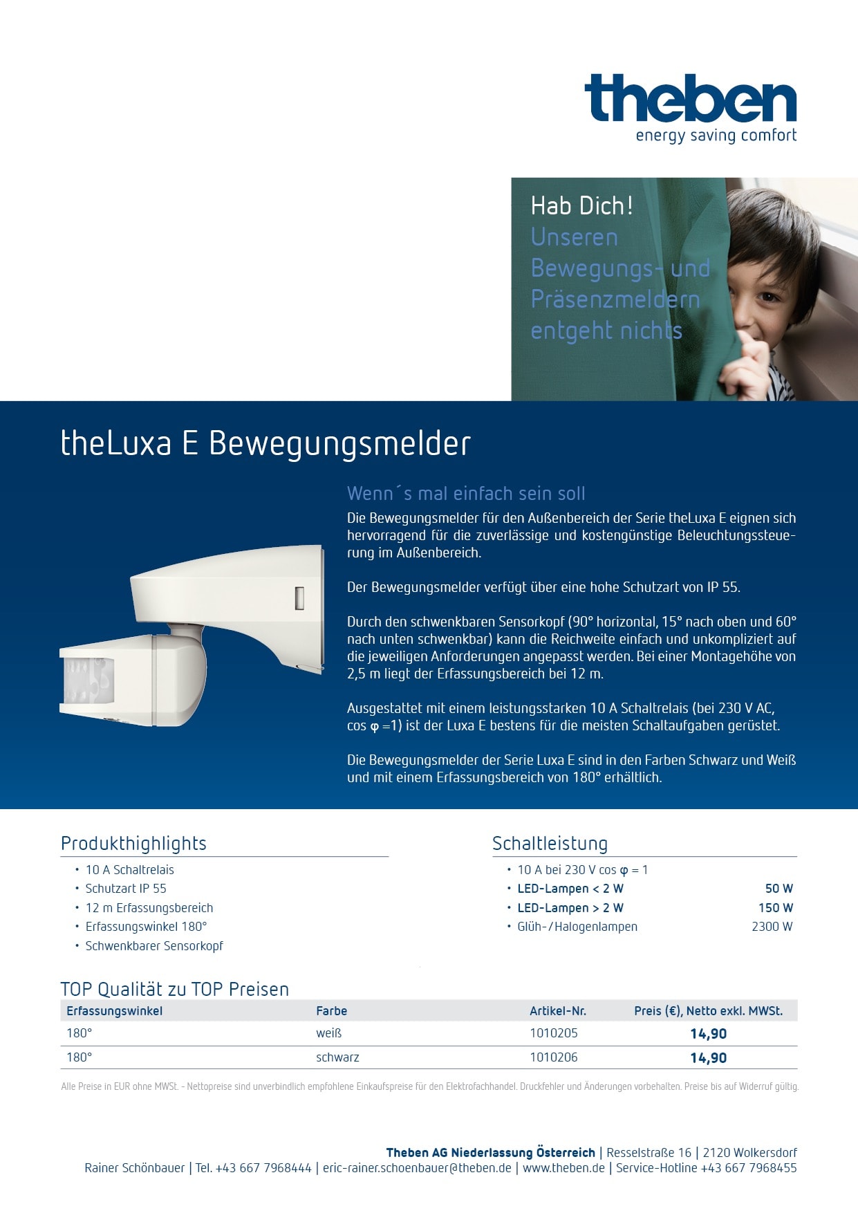 Die Bewegungsmelder für den Außenbereich der Serie theLuxa E eignen sich hervorragend für die zuverlässige und kostengünstige Beleuchtungssteuerung im Außenbereich.