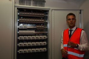 Christoph Czaby, Energieeffizienz-Experte bei Rexel präsentierte uns im Anschluss an die Vorträge den Niederspannungs-Hauptverteiler mit den 50 installierten Energiemessgeräten, die wesentlich zum Gesamterfolg der Energieeffizienzmaßnahmen beitragen. (Bild: Rexel)