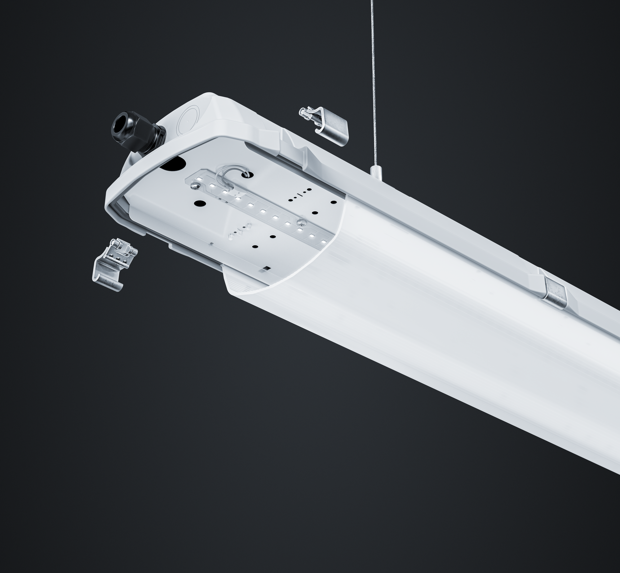 Ein weiterer Vorteil: Die Leuchte bietet ein durchdachtes Sicherheitskonzept für Notfälle und ist standardmäßig mit einer Notlichtfunktion ausgestattet. So ermöglicht die Einzelbatterieversorgung eine dreistündige Betriebsdauer. Dadurch ist auch in Ausnahmesituationen eine zuverlässige Lichtquelle gewährleistet und es stehen im Ernstfall genügend Zeit und Licht für die Evakuierung eines gefährdeten Bereiches zur Verfügung. Dank DALI-Protokoll lässt sich die Notlichtversorgung nahtlos an eine Gebäudemanagement-Software anbinden und in regelmäßigen Abständen auslesen, testen und überwachen. Die DALI-Integration ebnet zudem den Weg für eine bedarfsgerechte und individuelle Steuerung der Leuchte im Rahmen eines dynamischen, digitalen Lichtmanagements.